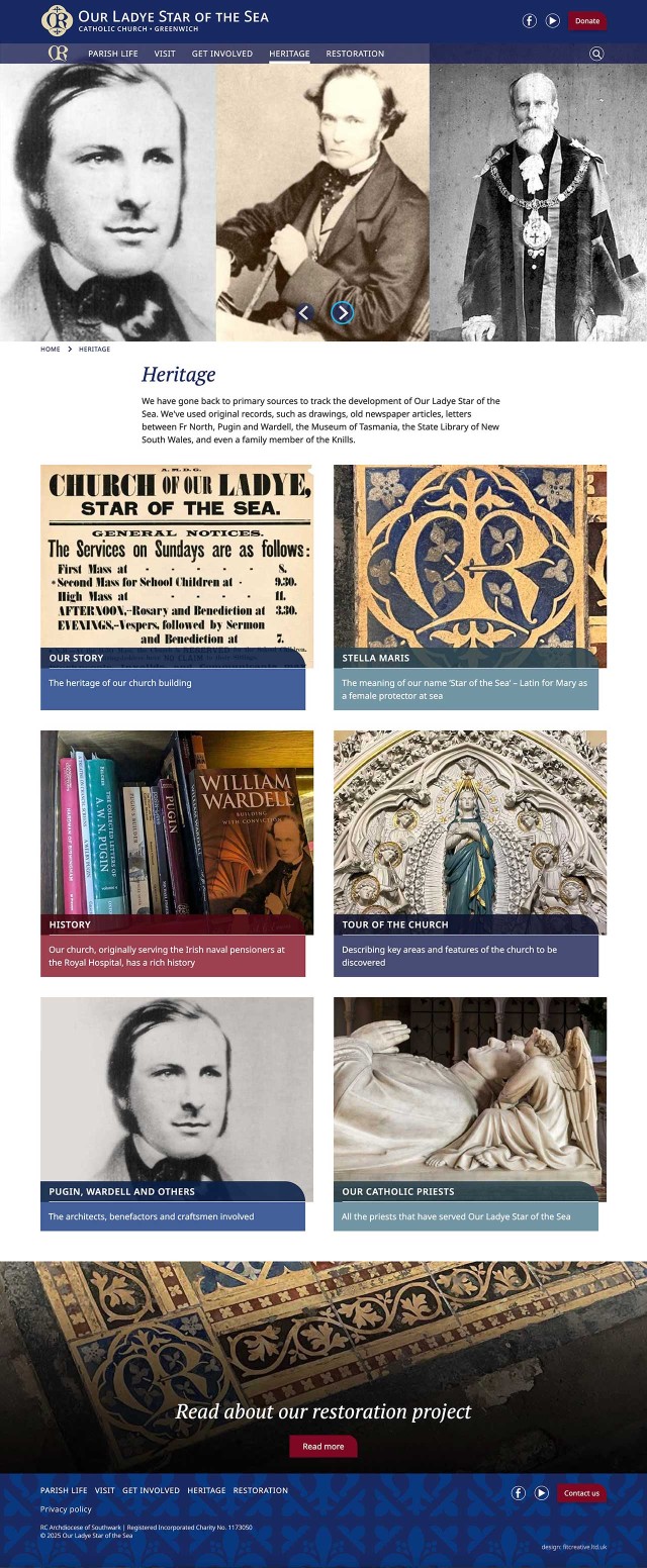 Having seen our previous work for St Peter's in Woolwich, Father Kevin Robinson and wife, Frances, approached us to create a new website for the church in order to better disseminate its cultural value.
