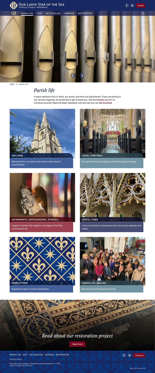 The new design is contemporary and sympathetic to the church, as well as being responsive to the browser screen width and device being used. A clear visual structure direct the visitor to the content they are seeking.