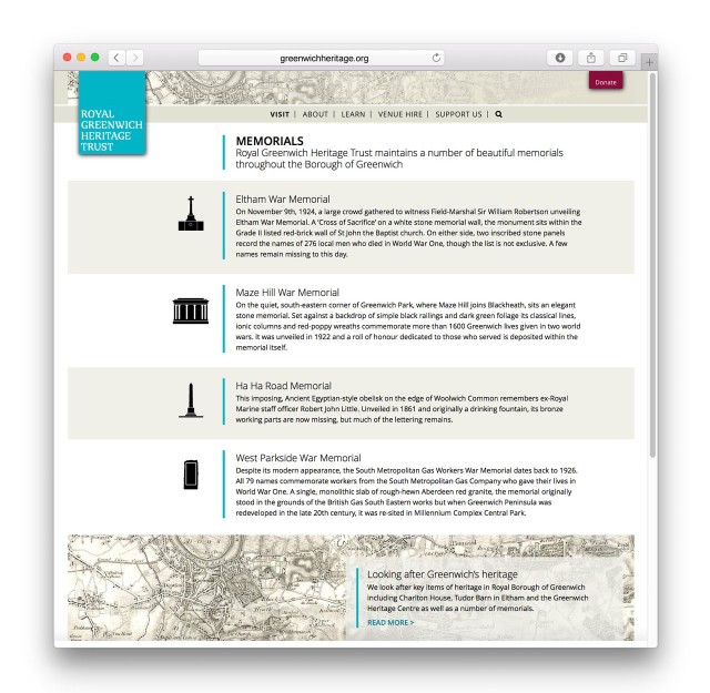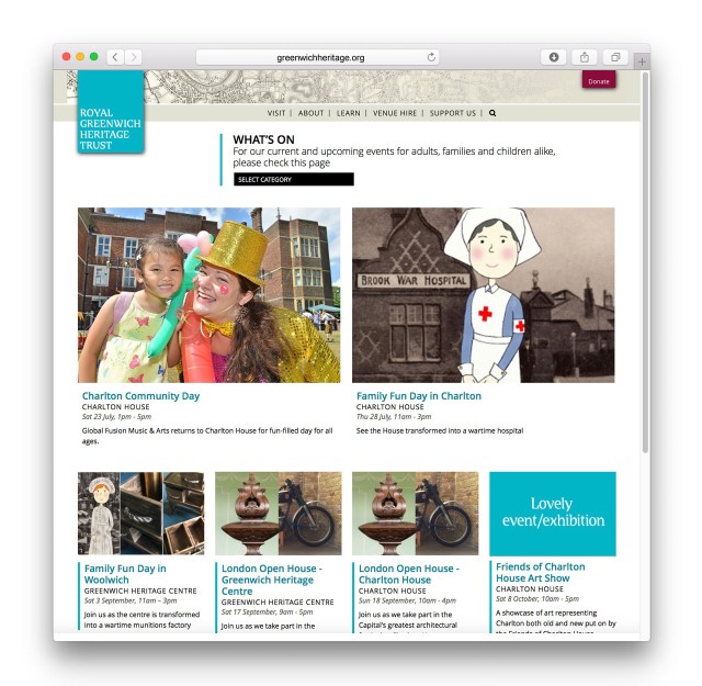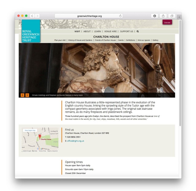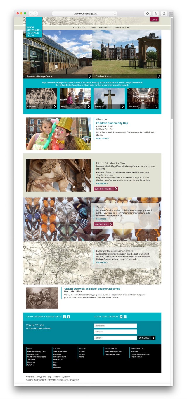 The challenge in creating the first website for the new Trust was to ensure to engage with all the users who were familiar with Charlton House and Greenwich Heritage Centre under separate websites and to capture the other heritage sites and memorials that the Trust takes care of.