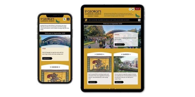 A simple single colour sheet handout was designed to help visitors to the Church better understand the site and its history whilst walking around. With a tear off panel to sign up to the newsletter, and box to hold those forms, it means the Trust can start to engage with visitors.