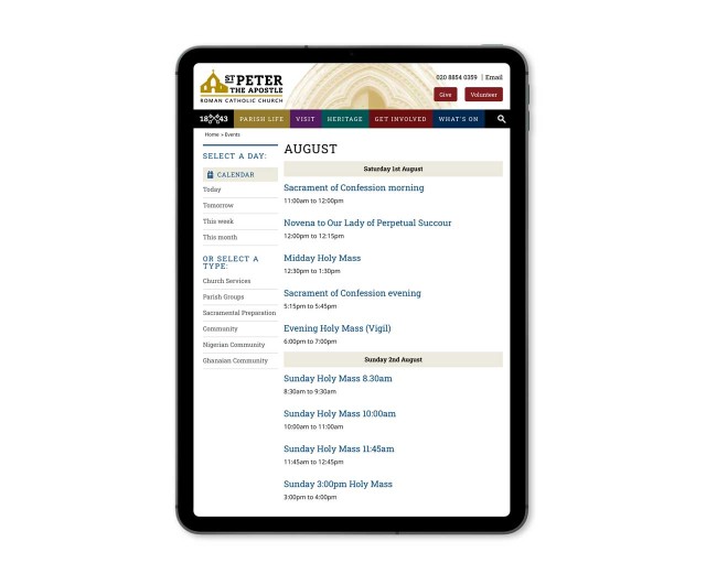 A well built calendar allows for Parish team and various community groups to add in their events and engage wider, and for users to see all that is happening at the Church.